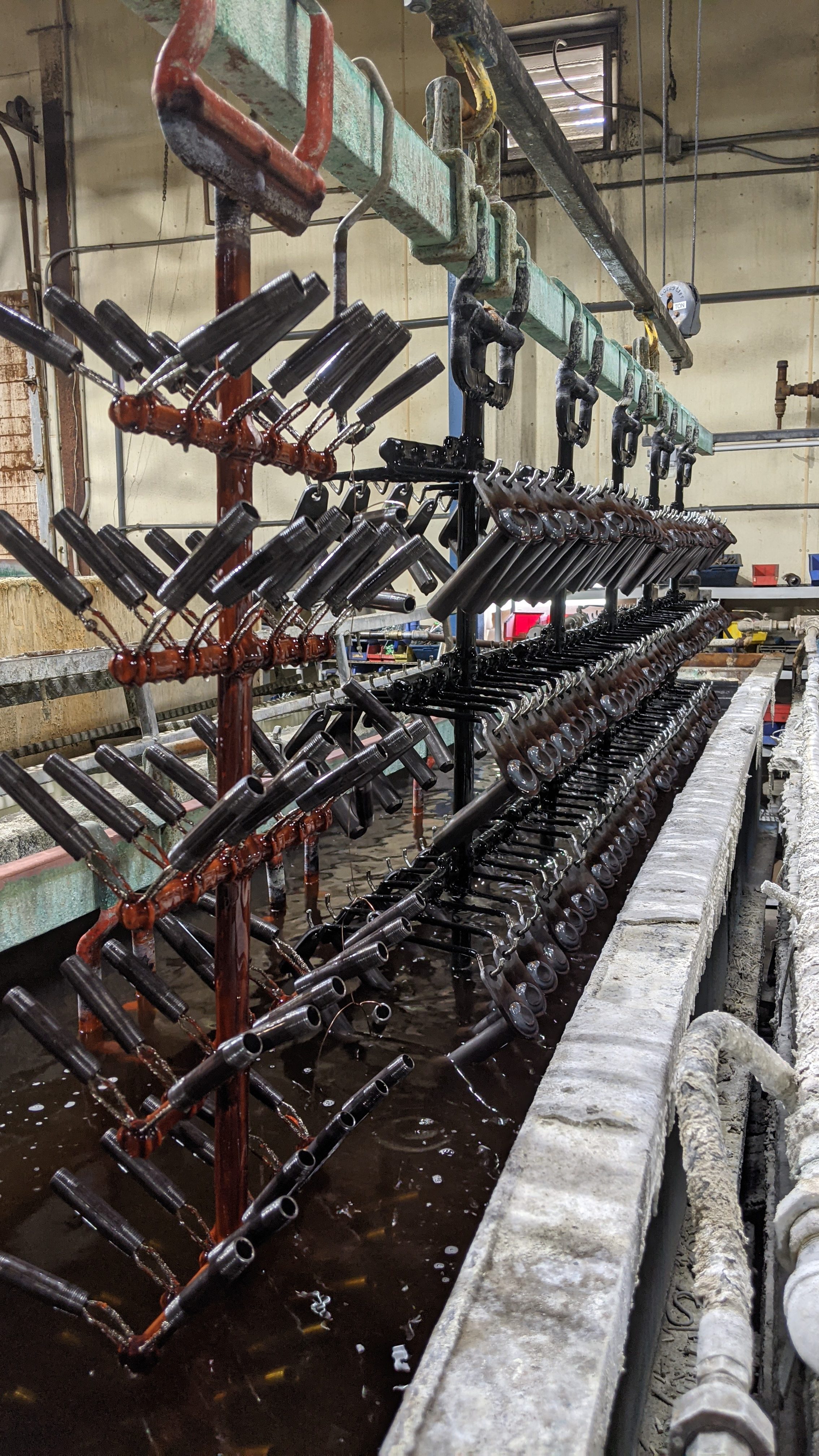 We offer high-volume automatic plating in alkaline zinc, along with manual lines for both alkaline and acid zinc processes. Our rack plating capabilities support a wide range of part sizes and turnaround speeds. Clear and yellow chromate finishes are available on all lines.